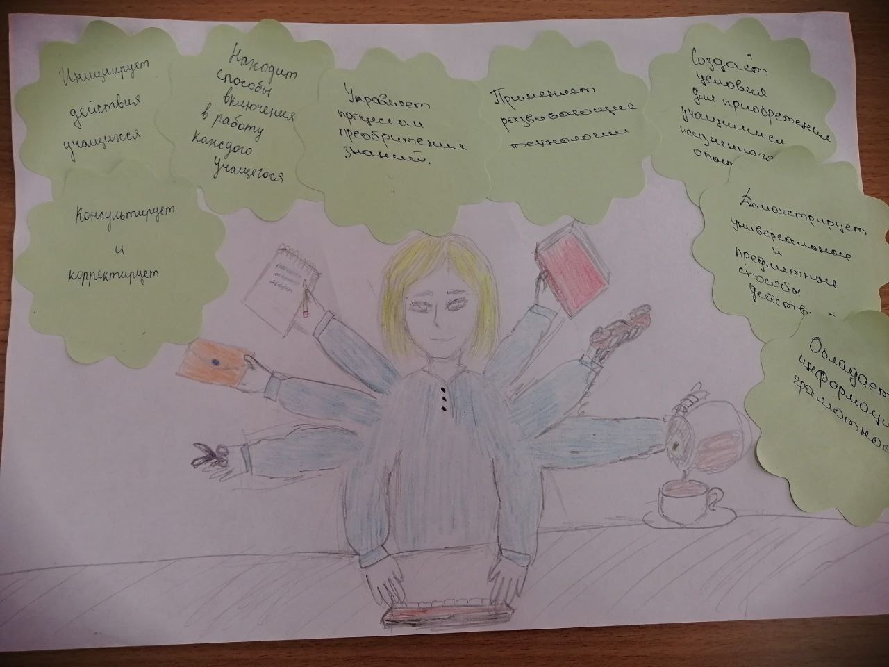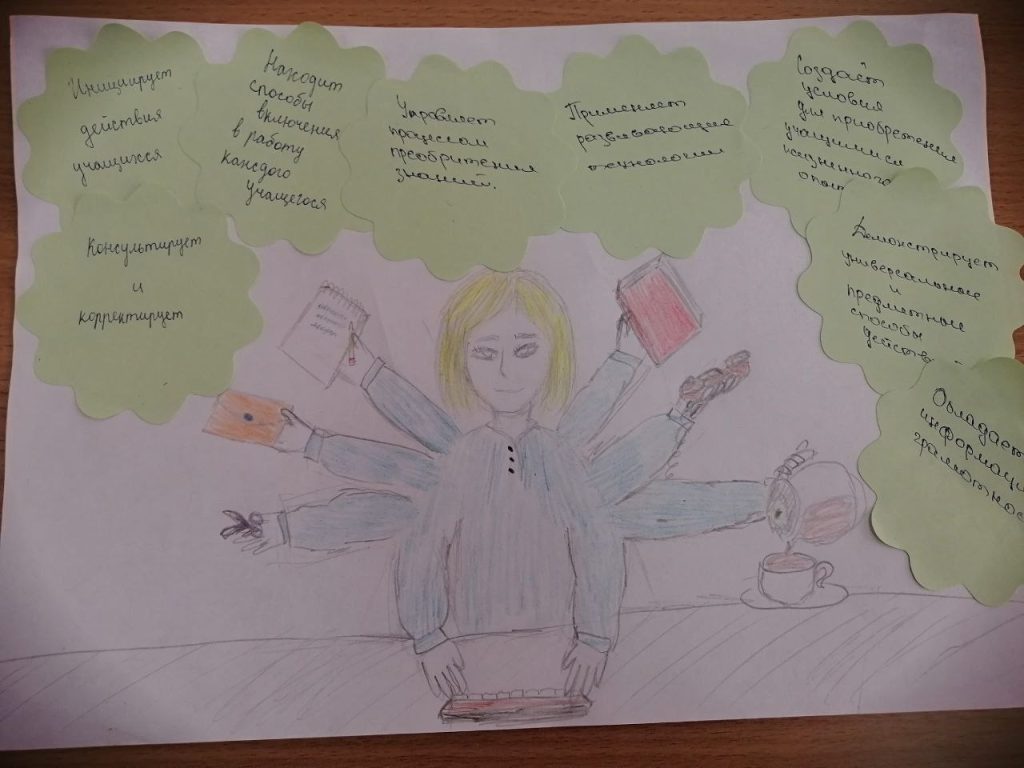 Нам стало понятно, что успех любого человека, как и каждого учителя, зависит от сочетания всех мягких и жестких навыков. Работа в группах предполагала, что мы нарисуем «портрет» современного учителя начальных классов. От нас требовалось проявить все свои навыки: навыки командной работы, коммуникабельность, критическое мышление, креативность и, конечно же, тайм-менеджмент.