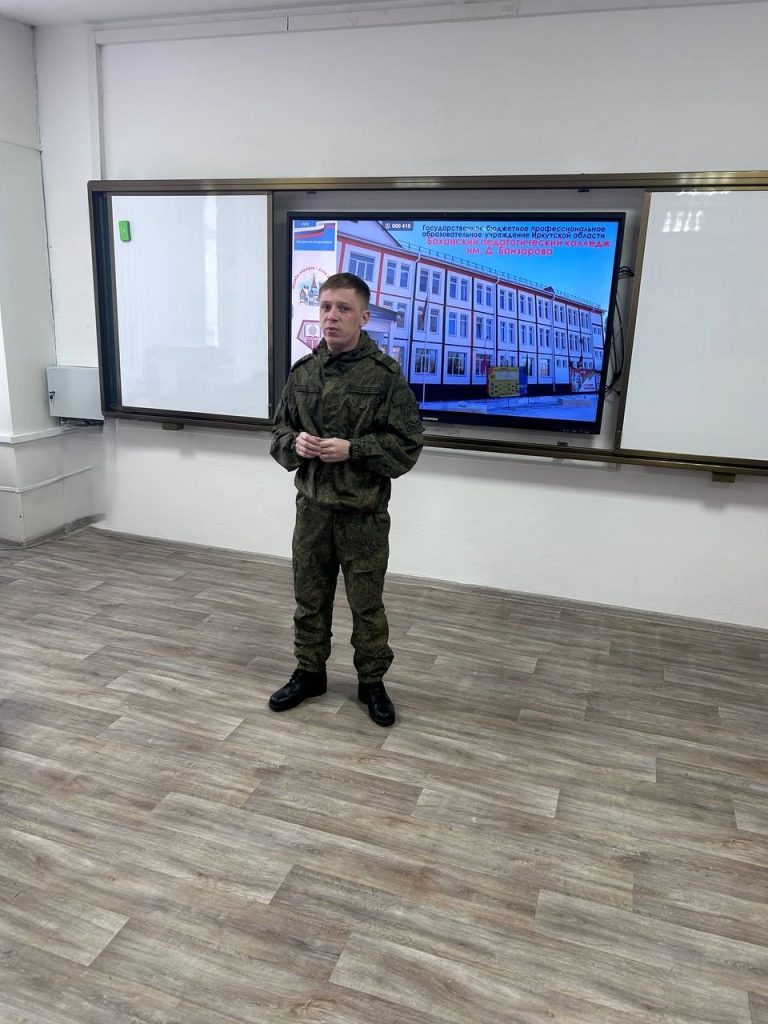 2 марта прошла встреча с представителем 12 ГУМО и сотрудником, представляющим новый род войск беспилотных систем со студентами Боханского педагогического колледжа.
